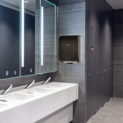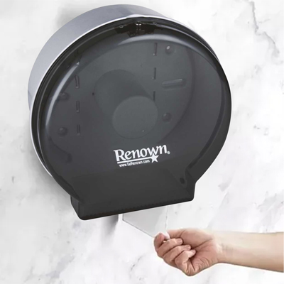 Dispensador de papel higiénico en rollo, su diseño permite reducir el riesgo de contaminación cruzada. Además, es fácil y seguro en mantenimiento, relleno y uso. Es ideal para baños con alto tráfico e...