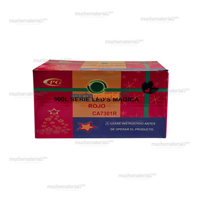 Serie con 300 luces LED rojo. Tiene un control el cual le permite controlar la secuencia de iluminación con solo presionar el botón. Ideal para usar en espacios interiores.
