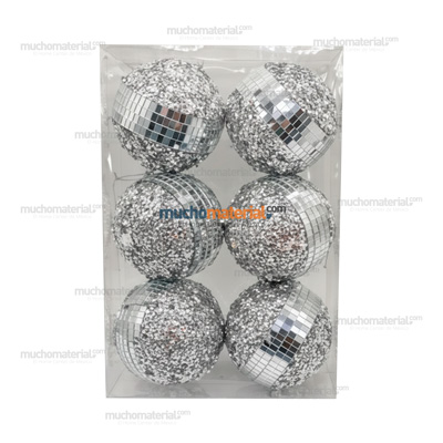 Set de 6 esferas cubiertas de lentejuela con hileras de espejos cuadrados de 10 cm de diámetro. Es una esfera de forma tradicional, con un casquillo plateado en la parte superior para colgarla. Ideal...
