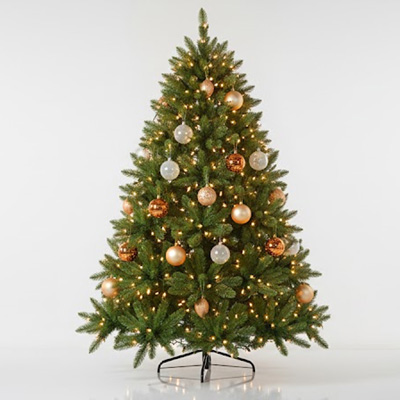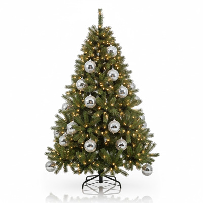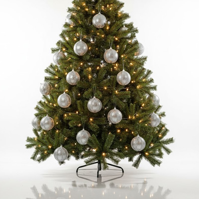 Set de 6 esferas en acabado diamantado con cintilla plateada de 8 cm. Ideal para una decoración navideña abundante, festiva y vibrante.