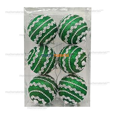ESFERAS VERDES DIAMANTADAS CON CINTILLA PLATEADA 6-PK