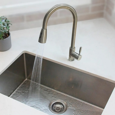 Llave monomando para fregadero de cuello extraíble para cocina. Fabricado su cuerpo con acero inoxidable y su cuello de resorte flexible, permite dirigir el agua con facilidad a todos los rincones del...