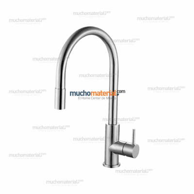 Monomando para fregadero con cuerpo de acero inoxidable. Su diseño tipo C le permite integrarse fácilmente en cualquier estilo de cocina, además que da un aspecto elegante y estético. Su cabezal es ex...