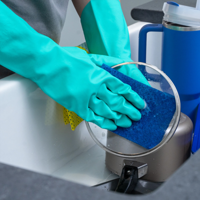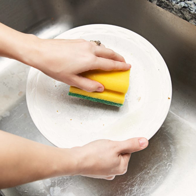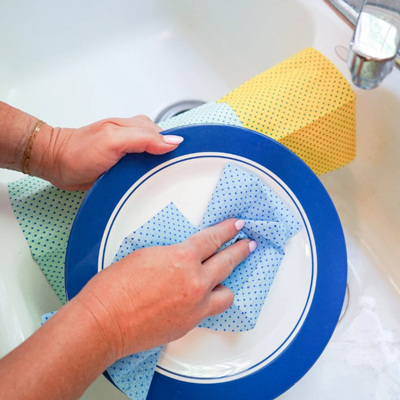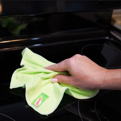 Los puntos de limpieza eliminan las manchas difíciles y proporcionan una limpieza sin rayones. Las toallitas se enjuagan para evitar que se peguen restos de comida.