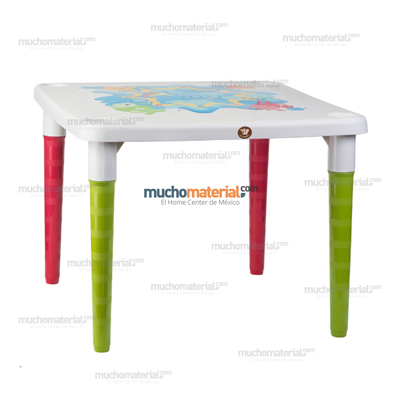 Mesa cuadrada infantil fabricada en polipropileno de alta calidad. Su diseño incluye una impresión con dibujos animados sobre el tablero principal, así como 4 porta vasos en sus esquinas. Es ideal par...
