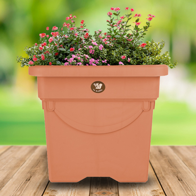 Maceta cuadrada elaborada en plástico de alta calidad, ideal para interior y exterior.
