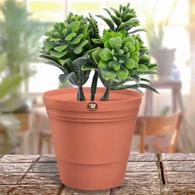 Maceta rectangular color barro con base para drenar agua. Elaborada en plástico de alta calidad permite plantar flores y/o plantas de tamaño mediano y/o grande. Ideal para espacios interior o exterior...
