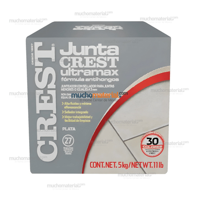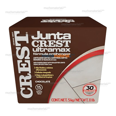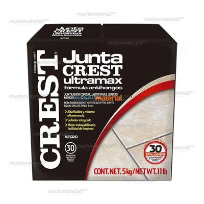 Juntacrest ultramax a base de cemento portland, resinas redispersables, sellador, antihongos y aditivos de alta calidad diseñado para juntas menores o iguales a 3 mm. Rellene boquillas para todo tipo...