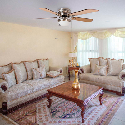 Abanico de 48”, equipado con un kit de iluminación LED de 15 W. Mantiene una constante circulación del aire en áreas de 9 a 16 m2. Además, cuenta con modo invierno, consiste en utilizar el interruptor...