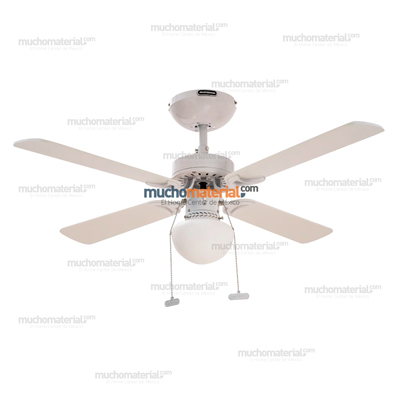 Abanico de 30” equipado con una pantalla blanca opalizada para foco con entrada E26. Su diseño y aspas permiten ventilar áreas interiores de hasta 9 m2, además de utilizarse como un elemento decorativ...