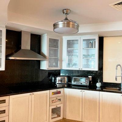 Ventilador de techo con aspas retráctiles y luz LED de tres tonos, ideal para espacios medianos. Se controla mediante control remoto o aplicación móvil vía Wifi, lo que permite programar su uso de for...