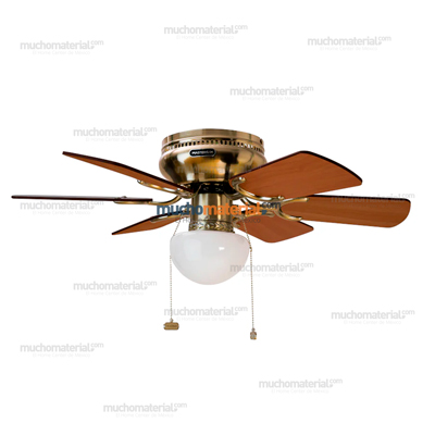 Ventilador de techo con diseño rústico y elegante, ideal para refrescar espacios interiores. Cuenta con aspas en tono latón antiguo que combinan con la estructura, además de una pantalla opalizada que...