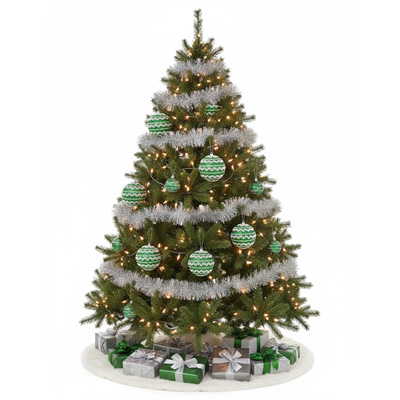 ESFERAS VERDES DIAMANTADAS CON CINTILLA PLATEADA 6-PK