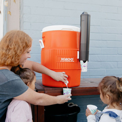 El enfriador de bebidas totalmente aislado mantiene las bebidas frías durante todo el evento. La tapa abatible se cierra de forma segura y se pliega durante el uso. La amplia apertura permite tragar o...