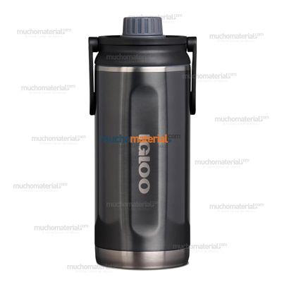 Botella térmica gris con aislamiento de doble pared al vacío que conserva la temperatura de tus bebidas por horas. Cuenta con tapa de popote abatible, asa plegable y base antideslizante.