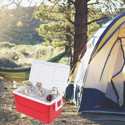 Hielera con capacidad para 6 latas marca IGLOO estilo retro, presenta un diseño de tapa de tienda de campaña en un tamaño de 4 QT listo para la aventura, perfecto para un sándwich y bebida.
