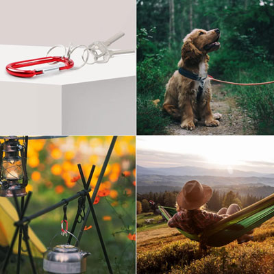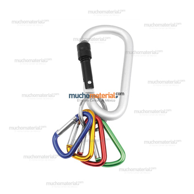 Mosquetón con 3 argollas que permiten la organización de llaves u objetos pequeños.