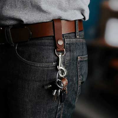 Tirante de cuero para cinturón. Permite la fácil organización de llaves u objetos pequeños.