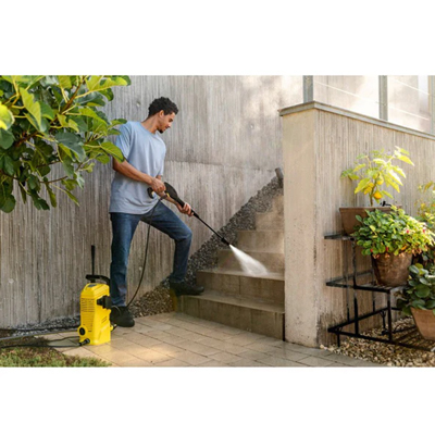 Máquina de lavado compacto con presión de 1600 PSI, para tareas de limpieza ocasionales en el hogar y patios exteriores. Incluye: manguera de presión de 4 metros, filtro de agua (pre instalado), pisto...