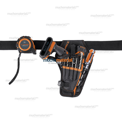 Fabricado en poliéster de 600 deniers de uso rudo con forro interno de PVC, con cinturón 100% polipropileno, ajustable con hebilla de liberación rápida que asegura el taladro. Bolsas reforzadas, cosid...