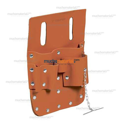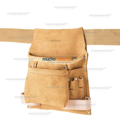 Porta herramientas de carnaza con 10 compartimentos, marca Truper fabricado en piel de lomo de búfalo para máxima resistencia.
