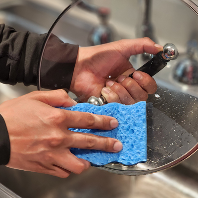 Los puntos de limpieza eliminan las manchas difíciles y proporcionan una limpieza sin rayones. Las toallitas se enjuagan para evitar que se peguen restos de comida.