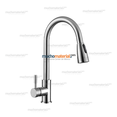 Monomando para fregadero con cuerpo de acero inoxidable. Su diseño tipo C le permite integrarse fácilmente en cualquier estilo de cocina, además que da un aspecto elegante y estético. Su cabezal es ex...