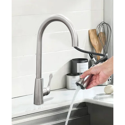 Llave monomando para fregadero de cuello extraíble para cocina. Fabricado su cuerpo con acero inoxidable y su cuello de resorte flexible, permite dirigir el agua con facilidad a todos los rincones del...