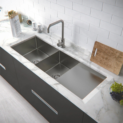 Tarja de cocina individual fabricada en acero inoxidable 304 de 44.5x41 cm. Cuenta con un recubrimiento posterior de poliuretano, que ayuda a reducir el ruido del agua al caer y a mantener la temperat...