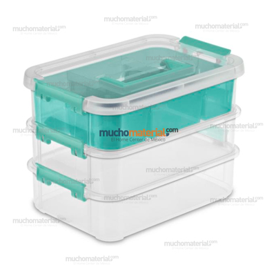 Caja apilable de almacenamiento con 3 compartimientos. Su diseño permite apilar varias cajas de forma vertical para maximizar el espacio, además tiene un asa que le permite transportarla más fácilment...