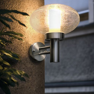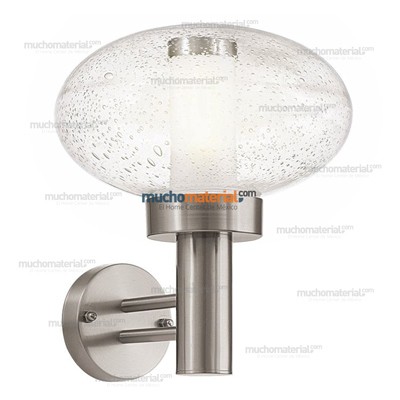 Lámpara de pared de exterior de acero inoxidable con vidrio efecto húmedo de forma esférica.