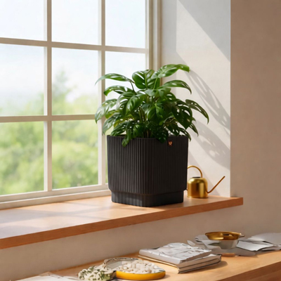 Es una excelente opción para decorar y organizar tus plantas en cualquier espacio, su diseño moderno y compacto color negro mate de tamaño chico, perfecta para interiores y exteriores, aportando un to...