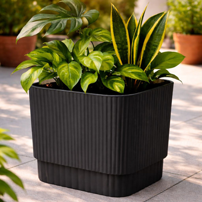 Es una excelente opción para decorar y organizar tus plantas en cualquier espacio, su diseño moderno y compacto color negro mate de tamaño grande, perfecta para interiores y exteriores, aportando un t...