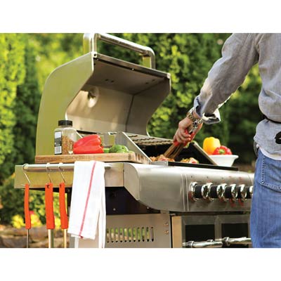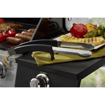 A nadie le gusta un desastre alrededor de la parrilla. La horquilla con soporte de Mr. Bar-BQ® se destaca por sí misma con manijas elevadas que sostienen su herramienta. Esto evita que se propague el...