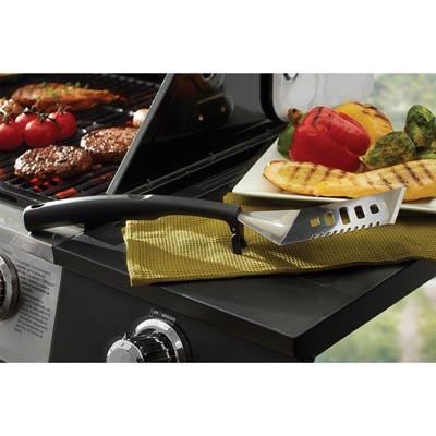Juego de herramientas Mr. Bar-BQ Grab & Go, 2 piezas, incluye: espátula y pinzas, placas cromadas con plástico de agarre para los dedos.