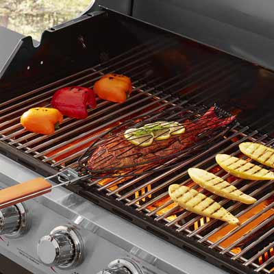Canasta para asar pescado flexible/expandible para preparar sus platos de mariscos favoritos a la parrilla a la perfección gracias a esta práctica herramienta. La superficie es antiadherente y el mang...