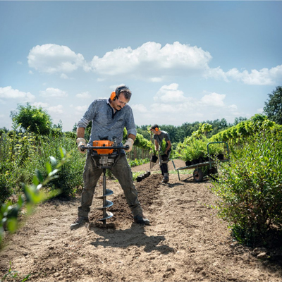 Ahoyadora a gasolina ideal para perforar agujeros para plantar en agricultura, colocar postes, pozos de drenaje y tomar muestras de suelo. Gracias a la conexión estándar para barrenas de 20 mm, se pue...